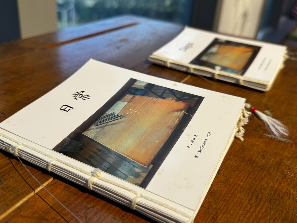 這個作品的呈現,是以詩作為出發,並以Midjourney AI 生成圖片所完成的中英文繪本,最後搭配聲音設計與我朗讀詩作。
